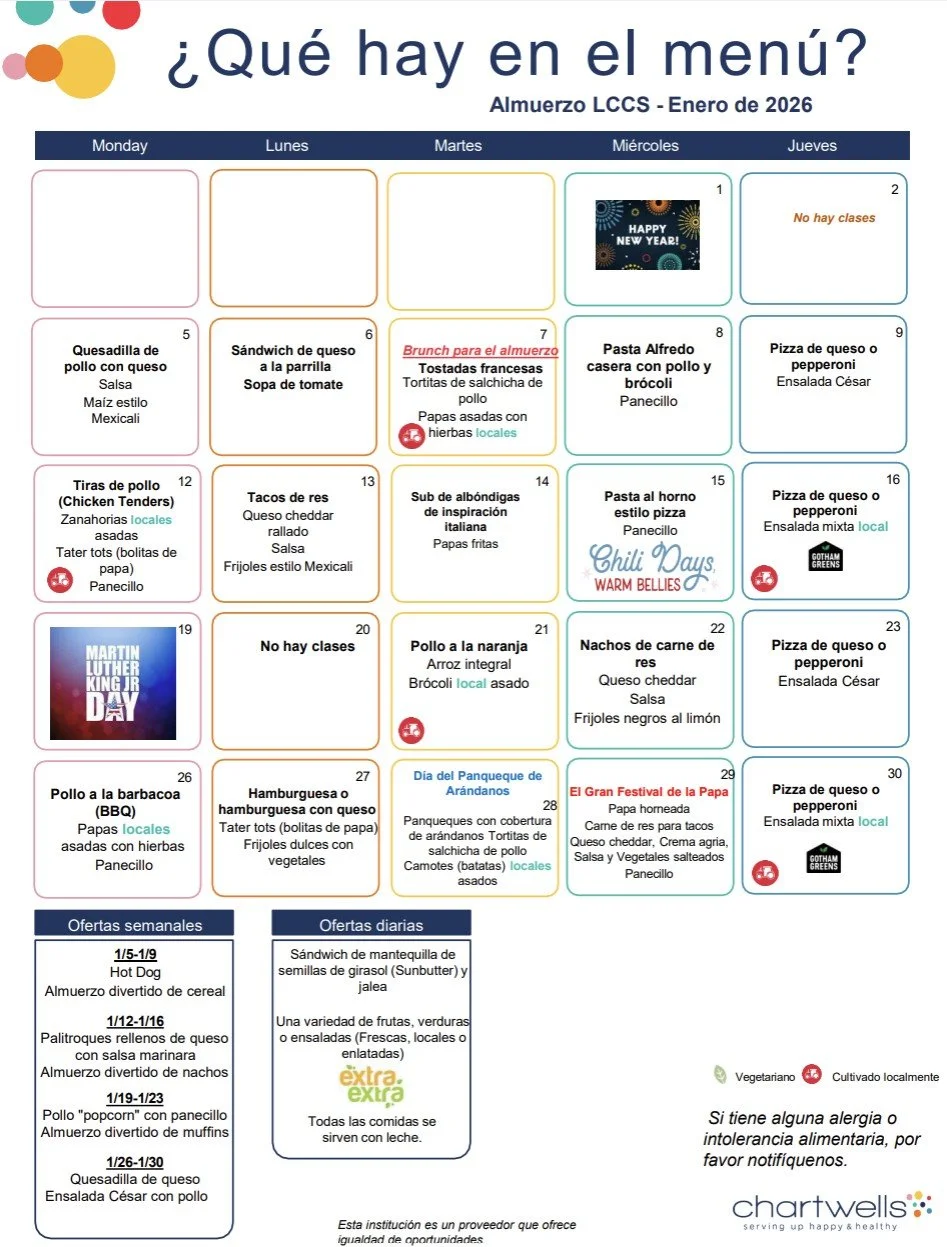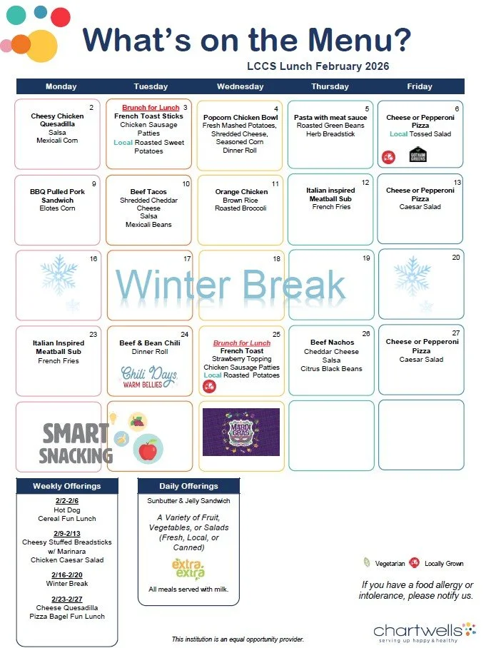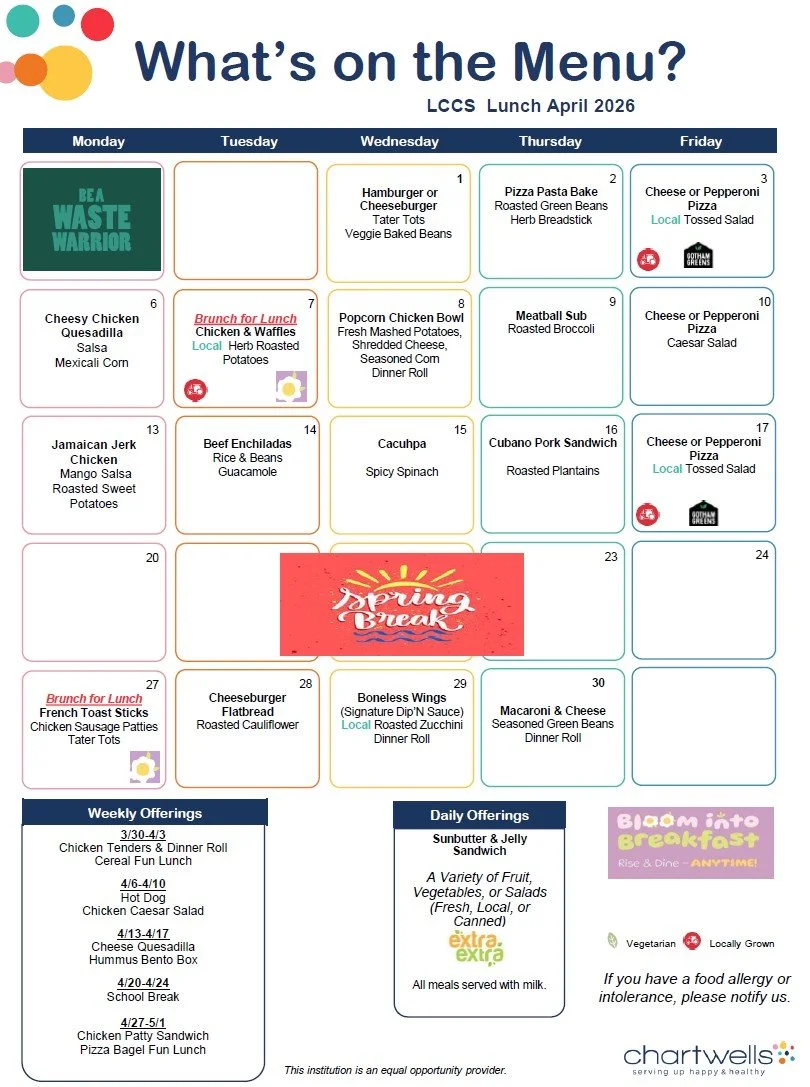 Download the current lunch menus here.
